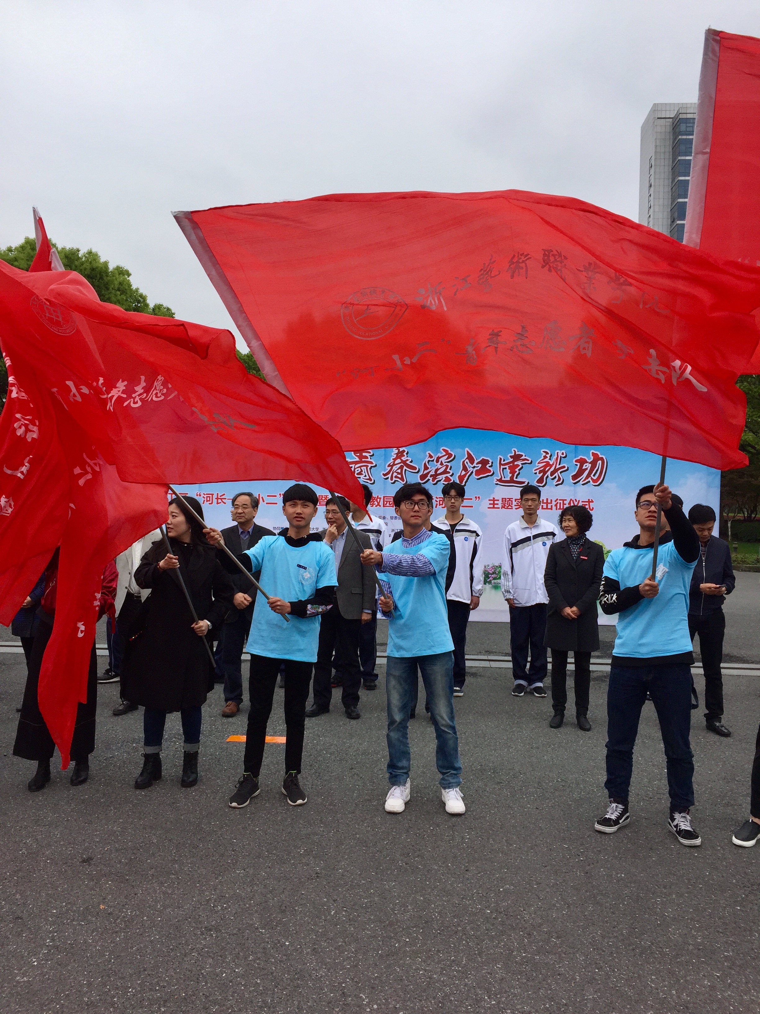 随着全省吹响了新一轮全面治水的号角,高新区(滨江)也打响了“五水共治”的攻坚战。为助推滨江区“剿灭劣V类水”工作,浙艺积极参与筹划由滨江区五水办、团区委等部门共同发起的护水“6+1”志愿实践活动(6所高校与滨江区进行校地合作)。“河小二”是广大青少年参与治水力量的总称,是青年治水的铁军。活动现场,浙艺“河小二”与滨江区高教河河长结对,为河长颁发聘书,现场领导为“河小二”总队和分队授旗。下一阶段,根据省教育厅“百万学生知‘五水’,十万学子巡江河,千支队伍治污水”主题实践活动的要求,浙艺“河小二”青年突击队将开展科普宣传、青山绿水我来绘、智慧巡河、水质跟踪、艺术作品创作展演等一系列活动,全面参与“青”字号美丽浙江创建。