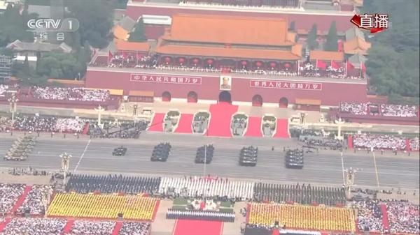 音乐系18级歌舞班冯一骐:今天,中国人民解放军以威武的雄姿接受检阅,向祖国汇报,向党和人民汇报,作为一名退役军人,当我看到一个个战士踢着整齐的步伐从天安门前走过时,激动得热泪盈眶,这是我们强大的中国,这是我永远热爱着的祖国!我爱你,中国!”