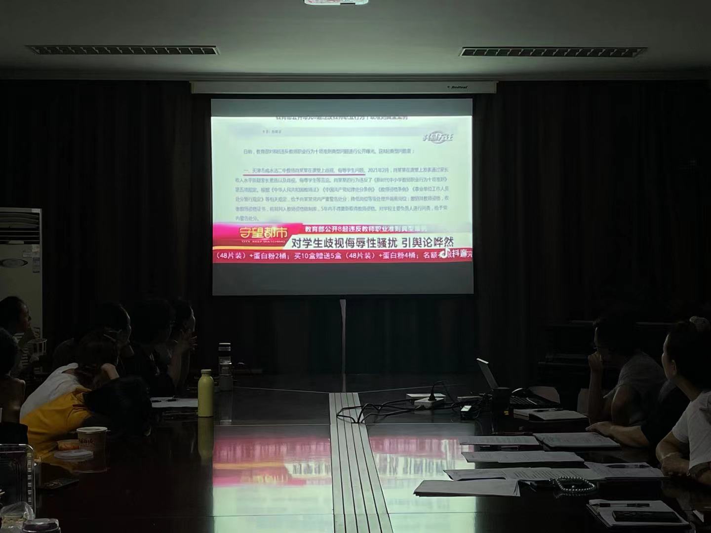 会上,舞蹈系党总支书记曹亮红解读了教育部《关于加强和改进新时代师德师风建设的意见》,带领全体教师逐字逐句学习了《新时代高校教师职业行为十项准则》《新时代中小学教师职业行为十项准则》,重温了《舞蹈系教师行为规范》《舞蹈系实训室管理条例》《舞蹈系琴房管理条例》等内部规范和制度。通报了教育部曝光的8起违反教师职业行为十项准则典型案例,全体教师观看了警示教育短视频。