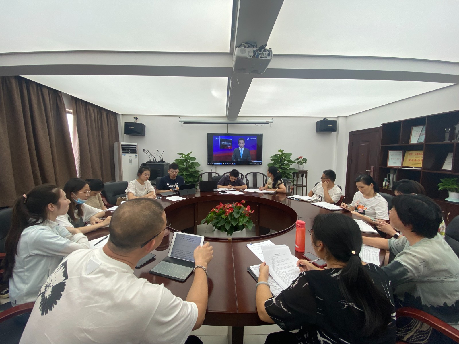 9月29日,戏剧系党总支在系会议室召开理论中心组学习暨主题党日活动。系领导班子,全体师生党员参会,集体观看浙江省委文化工作会议视频,围绕“党建引领高质量发展 打造新时代文化高地”主题,结合工作岗位和实际情况,展开大交流、大讨论。