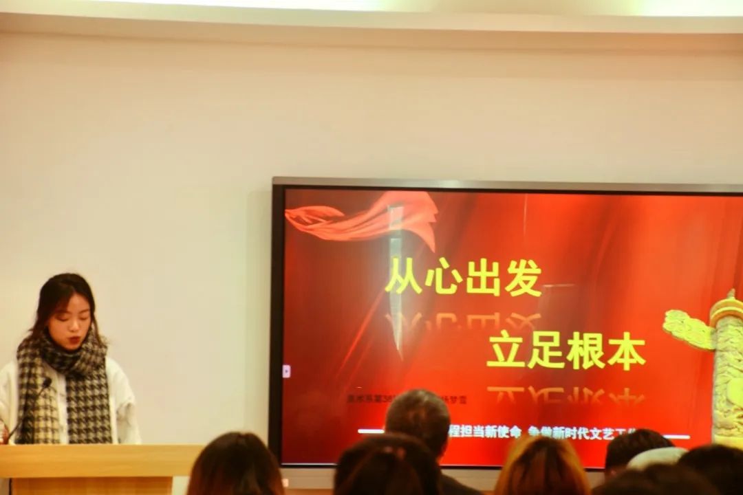 12月17日,美术系学生党支部开展“奋进新征程担当新使命  争做新时代文艺工作者”第二届主题微党课比赛。此前,来自第38期党校学员的10名同学,经过系部初赛选拔后,共有5名同学脱颖而出参加本次微党课决赛。美术系组织员章彪、学生党支部书记龚林峰、团总支副书记朱丹丹出席并担任比赛评委。全体学生党员、入党积极分子代表、青年理论学习小组成员代表等现场观摩学习。
