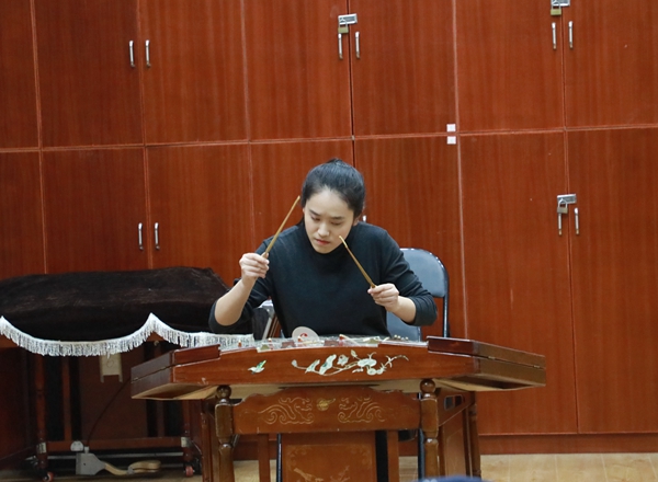 考生的演奏乐器涵盖了竹笛、主胡、二胡、扬琴、琵琶、阮、古筝、戏曲打击乐器等,考生们现场演奏了《秦土情》《枫桥夜泊》《郁轮袍》等曲目。从小学就开始学习古筝的杨同学现场演奏了《箜篌引》,她说:“从小学一年级就开始学习古筝,也很热爱越剧,对于这次考试充满了信心。”