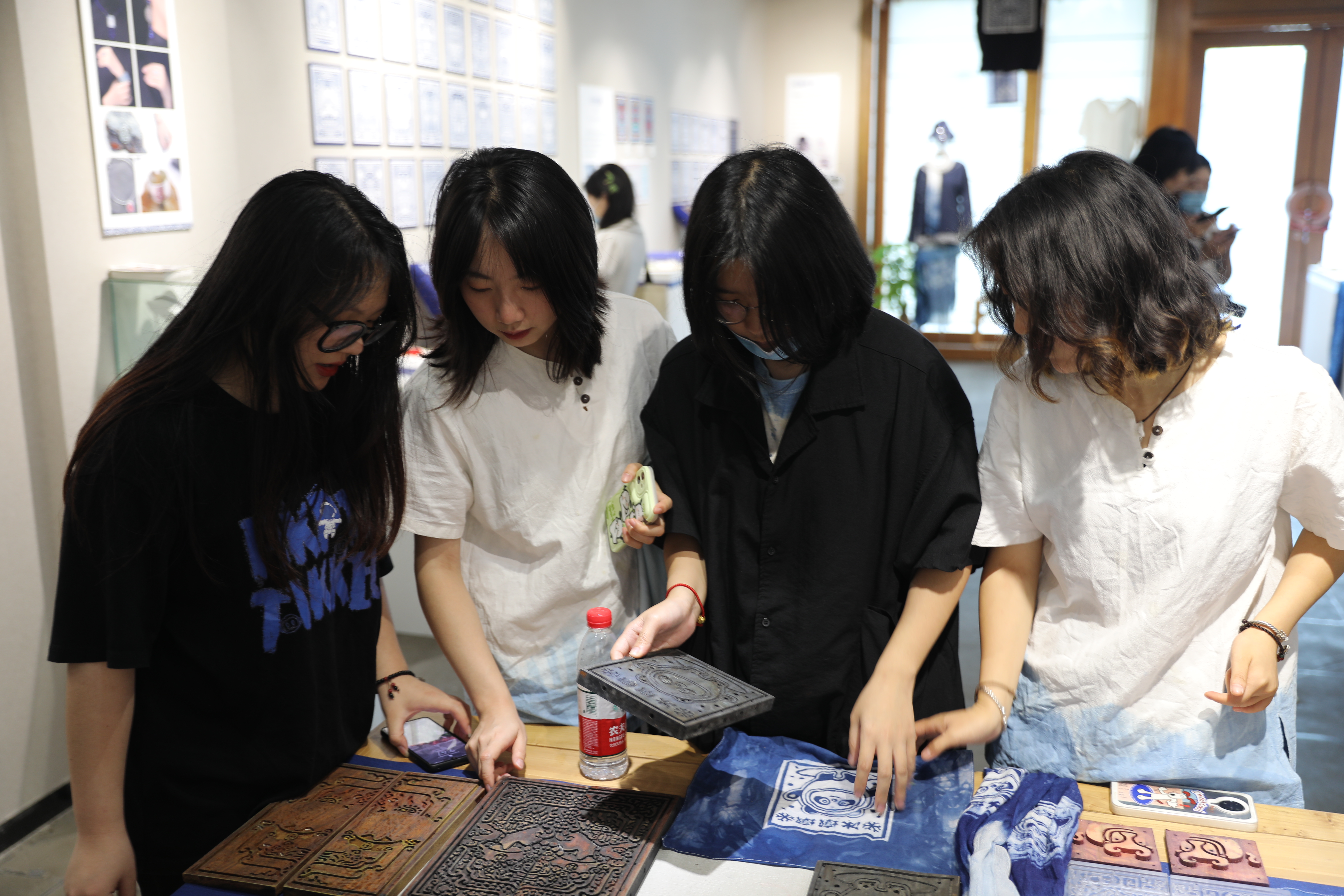 此次展览“传统夹缬展区”展示非遗夹缬发展历史,探寻传统蓝染韵味;“夹缬文化传承与创新区”展现夹缬传统新貌,融入现代元素焕发传承新活力;“夹缬文化之礼区”将夹缬、地域、民俗文化巧妙融合,衍生传承新模式;“夹缬互动研学区”借力实践互动感悟古缬新韵。