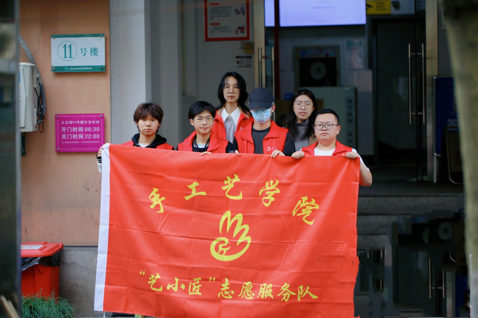 4月4日中午,手工艺学院艺小匠志愿服务队来到立志园11号楼开展清理寝室门口张贴物活动。在活动中,志愿者们手持垃圾袋等工具,热情高涨,对寝室门前的陈旧张贴物进行撕除。